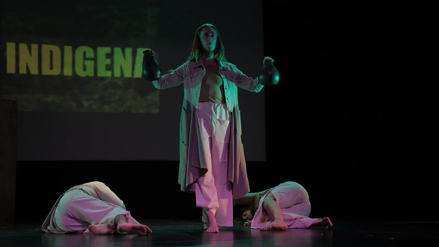 Kanay-Apuntes Americanos was presented by Barba Marcotulli in co-production with The Koubek Center with funding support from John S. and James L.Knight Foundation, as part of its Knight Arts Challenge Award (2019). Research was done in artistic residency with Correlación Contemporánea (Peru) and in consultation with visual artist Marco Herrera, and historians Maritza Villavicencio and Carol Damian