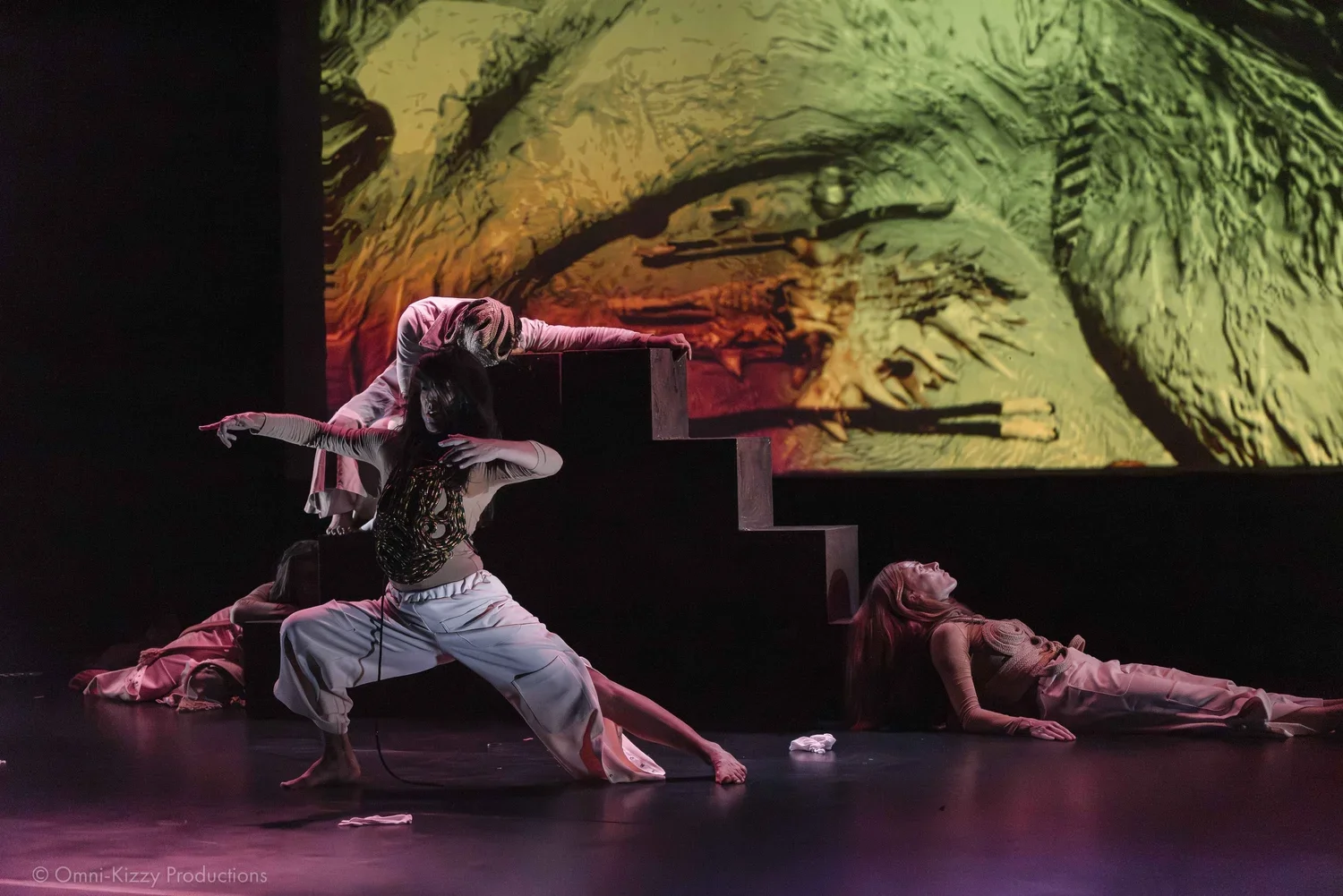 “My role as the Lighting Designer was to evoke the textures of sand and abstract contrasts through dynamic movement-based lighting. Working closely with the video team, I integrated multiple projection and media elements with the lighting design to create a cohesive visual environment. This fusion of light and video resulted in a seamless, immersive aesthetic that elevated the overall performance.